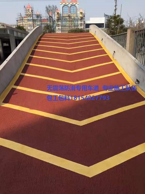 新型無震動防滑車道較之傳統(tǒng)水泥坎及花崗巖或其他種類的車道,其*大特性是減少了車輛輪胎與車道間摩擦的噪音,降低了普通車道對汽車輪胎的損傷,阻尼性能強(qiáng),駕馭感舒適,起伏性低。彩色底紋和防滑層,既美觀,又對駕駛者具有警示減速作用,且用途廣泛