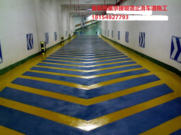 防滑車道又稱無震動止滑車道、停車場防滑坡道、暴砂防滑地面、止滑型坡道、停車場防滑地坪漆等。專門用于各類停車場上、下坡道場所。防滑車道材料一種雙組份、反應(yīng)硬化性材料,主要成分由是改性樹脂和C料組成,含有多 角性硬度極高的骨材,利用巨大比表面積,達(dá)到防滑效果