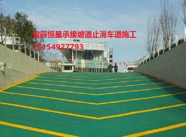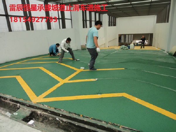 3.防滑車道地坪(止滑車道)是一種多角性硬度極高的礦物骨料與改性樹(shù)脂、其它摻和物和外加劑組成,采用特種現(xiàn)場(chǎng)工藝施工而成,其成品具有防滑耐磨、舒適無(wú)震動(dòng)等多種優(yōu)異的性能,而且圖案美觀鮮明、標(biāo)志性強(qiáng)。相對(duì)于傳統(tǒng)的水泥坎車道的震動(dòng)大、易粉化、不舒適、檔次低和防滑地磚車道、花崗巖車道的阻力小、易滑危險(xiǎn)等缺陷,無(wú)震動(dòng)防滑車道已成為汽車上下坡道、交通道路、美化區(qū)域的*產(chǎn)品。 適用范圍:各種停車庫(kù)的上下坡道、道路路口、自行車道路、公交車道、汽車上下坡道、機(jī)場(chǎng)上下坡道、斜坡及路面等有特殊防滑要求及處理的部位、路面、美化區(qū)域等。