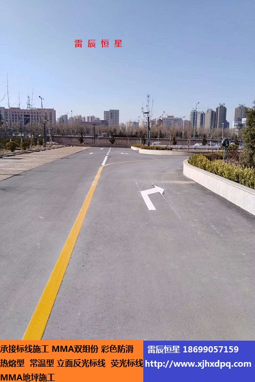 雙組份標(biāo)線涂料的特點(diǎn): 1. 對(duì)環(huán)境友好:雙組份標(biāo)線涂料不含溶劑,揮發(fā)物含量低,老線復(fù)線無(wú)需打磨,屬于環(huán)境友好型產(chǎn)品。 2. 反光型好:面撒微珠在雙組份反應(yīng)過(guò)程中,在分子健力的作用下,使其與標(biāo)線牢固結(jié)合為整體,不易脫落,反光性好。 3. 耐久性好:?jiǎn)蝹€(gè)組份的分子量小,在發(fā)生聚合反應(yīng)前有較好的滲透性,在聚合過(guò)程中發(fā)生聚合化學(xué)反應(yīng),使標(biāo)線與地面牢固成為整體。附著力*,特殊的施工工藝,保證了0.6mm的漆膜厚度有效地保證了一次施工,使用壽命兩年的標(biāo)線壽命。 4. 抗污性好:成膜后形成的超大分子量漆膜飽滿、堅(jiān)固、耐候性好,實(shí)驗(yàn)證明在高溫100℃以下,漆膜不隨氣溫變化而變化,抗污性好,被標(biāo)線行業(yè)稱為:瓷玉標(biāo)線。