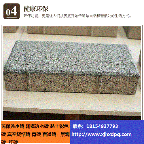 又過了一段時(shí)間.為了加強(qiáng)磚體的抗壓和抗折強(qiáng)度.技術(shù)人員用碎石作為原料,加入水泥和膠性外加劑使其透水速度和強(qiáng)度都能滿足城市路面的需要.這種磚才是市政路面上使用的透水磚.這種磚的價(jià)格比起用陶瓷燒制的陶瓷透水磚相對(duì)便宜。