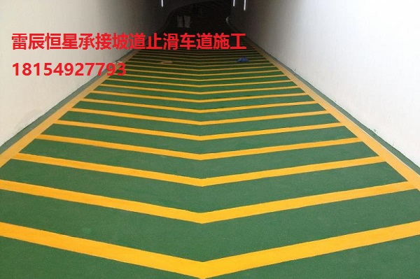 無震動止滑車道又稱防滑坡道、停車場防滑坡道、暴砂防滑地面、止滑型坡道、停車場防滑地坪漆等。專門用于各類停車場上、下坡道場所。