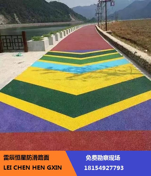 冷涂型彩色防滑路面材料的類型有丙烯酸型、環氧型,聚氨酯型等,其為液態。施工時,無需大型設備,只需將基料與固化劑按比例混合后,用滾涂的方式涂鋪于路面,并添加防滑沙層,經過化學交聯反應,快速固化成堅韌的漆膜,形成彩色防滑路面。 施工簡單,快速簡便,目前已經成為市場主要的選擇對象。其中聚氨酯型由于其綜合性能更有優勢,所以在國內目前的市場占有率*高。