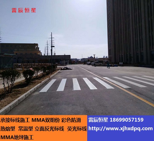 熱熔標線,玻璃微珠底漆,石油樹脂熱熔涂料小區道路的熱熔,斑馬線熱熔劃線,工廠停車場、廠區道路劃線、學校停車場、學校道路劃線、醫院停車場、醫院道路劃線、生活小區停車場、生活小區道路劃線、商業區停車場、商業區道路劃線,冷漆交通標線及交通標牌工程等。
